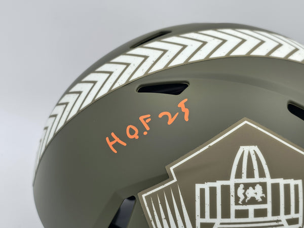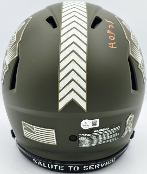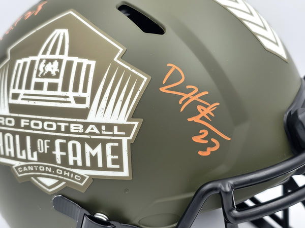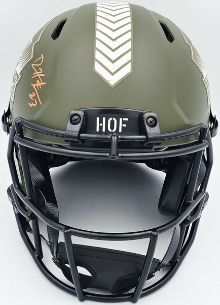 This is a Chicago Bears Army Green Salute To Service Full Size Authentic Speed Hall of Fame HOF Logo Helmet that has been hand signed by Devin Hester. This item has been certified authentic by Beckett Authentication (BAS) and comes with their tamper-proof hologram.