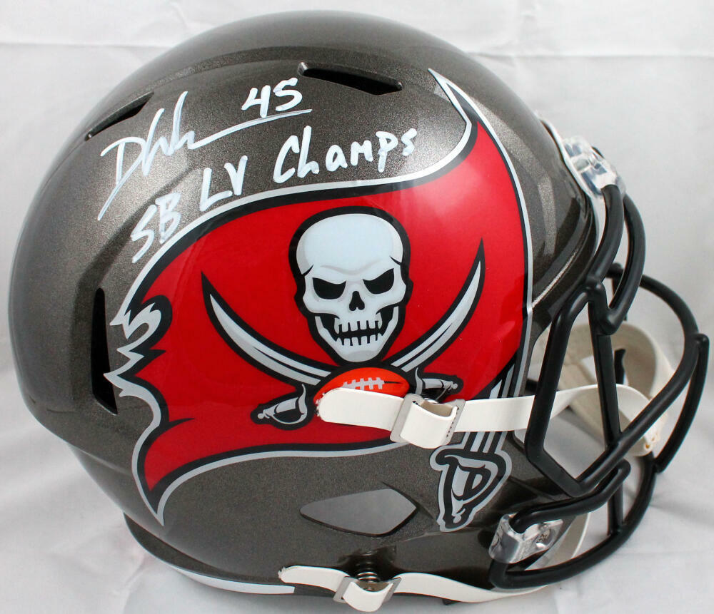 Devin White Signed Tampa Bay Buccaneers F/S Speed Helmet W/ Insc-Beckett W Hologram *White This is a Devin White hand autographed of the Tampa Bay Buccaneers Riddell Football Full Size Speed Replica Helmet inscribed with SB Champs. This item has a Beckett Witness Authentication, which comes with a Beckett numbered hologram and a QR code for verification. You can view this item on the Beckett Witness Authentication website and it shows when and where the item was signed. It was signed either at a public autograph appearance or a private signing. This is a stock photo of the item. Although you may not receive this exact item, the item you receive is virtually identical, brand new, and in great shape.