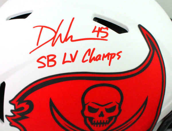 Devin White Signed TB Bucs Authentic Lunar Speed F/S Helmet Insc- Beckett W Hologram *Red This is a Devin White of the Tampa Bay Buccaneers hand autographed Riddell Football Lunar Speed Full Size Authentic Helmet inscribed with "SB Champs". This item has a Beckett Authentication, which comes with a Beckett numbered hologram and a generic Certificate of Authenticity. You can view this item on the Beckett Authentication website, it shows when and where the item was signed. It was signed either at a public autograph appearance or a private signing. This is a stock photo of the item. Although you may not receive this exact item, the item you receive is virtually identical and brand new in great shape.