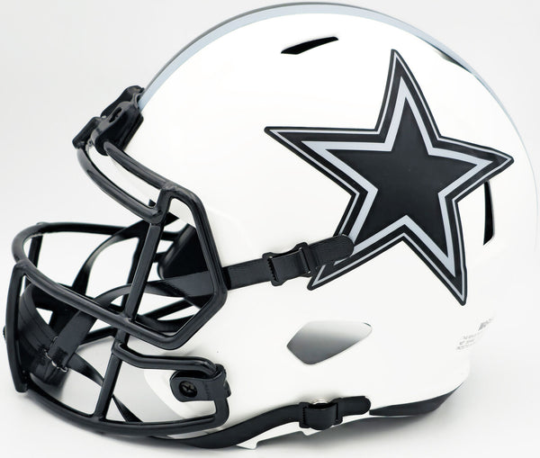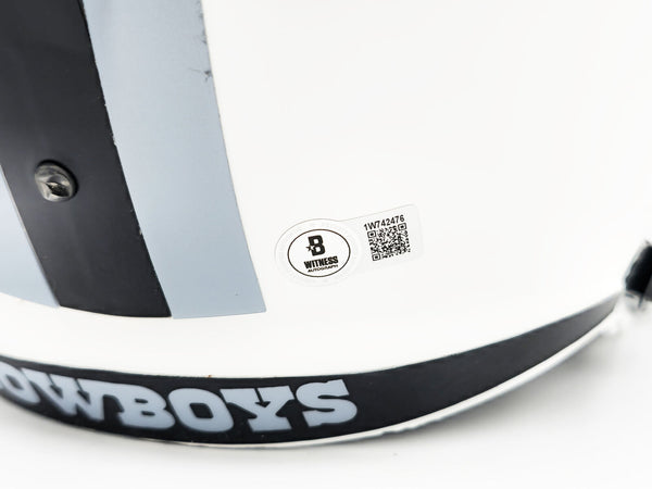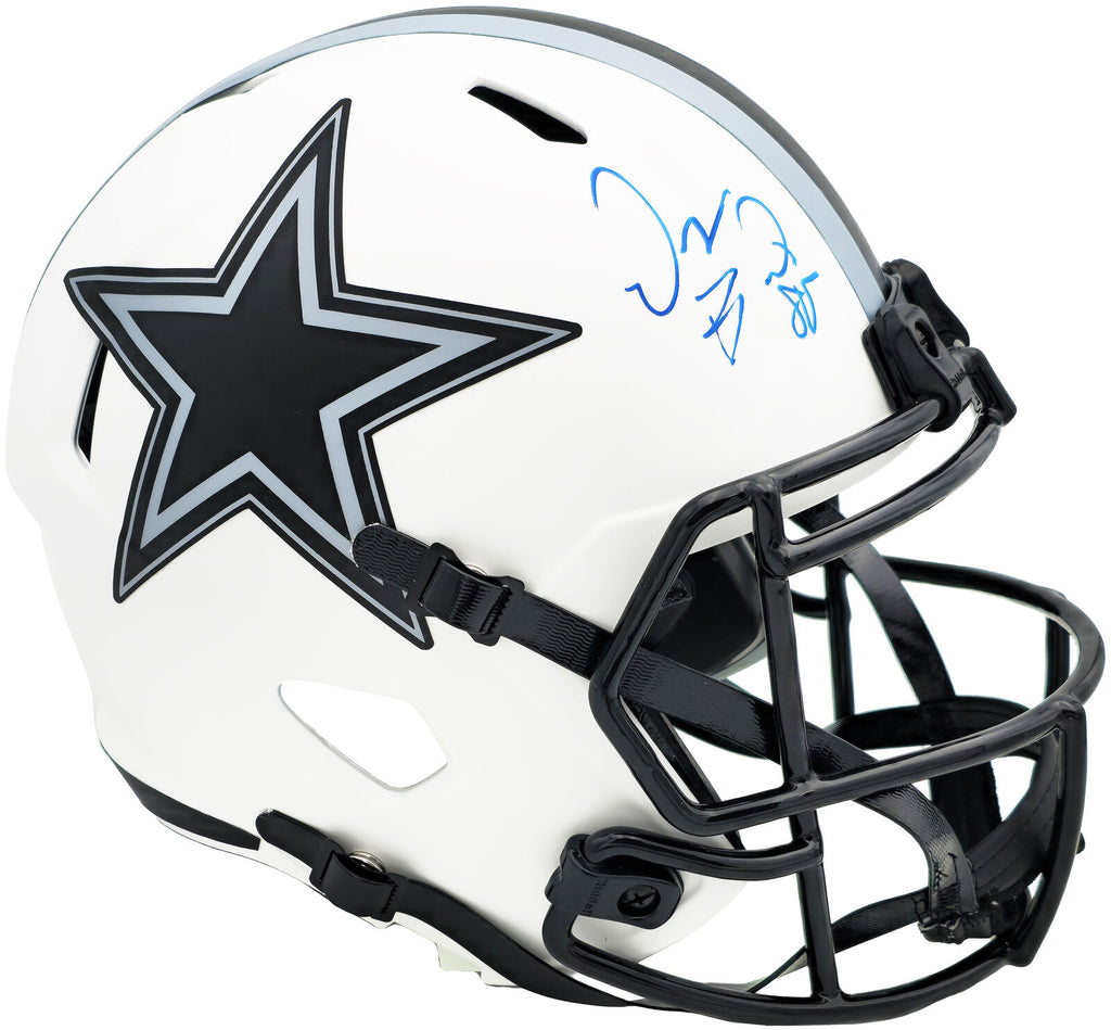 This is a Dallas Cowboys Lunar Eclipse White Full Size Speed Replica Helmet that has been hand signed by Dez Bryant. The Eclipse helmets are delicate and may have some marks or scratches on them. This item has been witnessed and certified authentic by Beckett Authentication (BAS) and comes with their tamper-proof witness sticker.