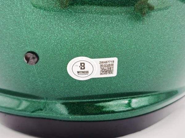 This is an Oregon Ducks Green Full Size Speed Replica Helmet that has been hand signed by Dillon Gabriel. This item has been witnessed and certified authentic by Beckett Authentication (BAS) and comes with their tamper-proof witness hologram.