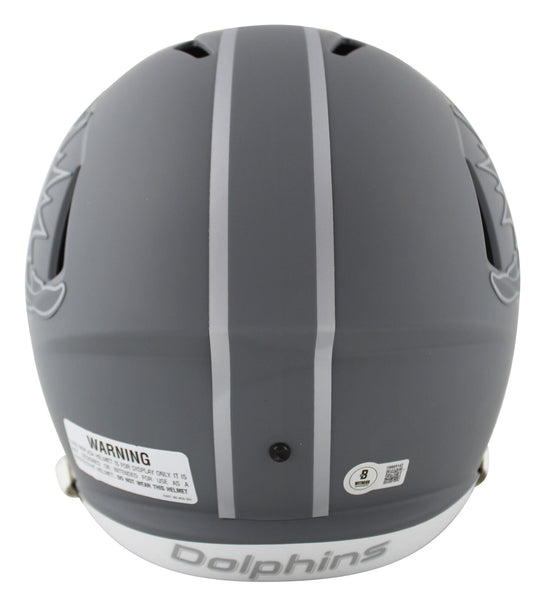 This Autographed Alternate Slate Riddell Full Size Speed Rep Helmet has been Personally Signed by Tyreek Hill of the Miami Dolphins. This item is 100% Authentic to include a hologram by Beckett Authentication Services. This item will come with an affixed Beckett Authentication Services (BAS) authentication sticker, which includes a scannable QR code to verify authenticity. Please note that Beckett no longer provides serial-numbered COA cards, and the attached BAS sticker will serve as the complete authentication for this item. This is a BAS Witnessed Protection Program item which means a Beckett Authentication Service representative was present when this item was being signed. We conducted an autograph signing with Tyreek Hill where multiples of the same item were signed. While the photographs are representative of this item, the size, placement and strength of the signature may vary. Each item is hand signed, therefore, each autograph is unique. This item can be verified through BAS Witnessed.