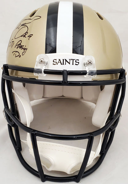 This is a New Orleans Saints Full Size Authentic Speed Helmet that has been hand signed by Drew Brees. This item was inscribed "571 Passing TD's." This item has been certified authentic by Beckett Authentication (BAS) and comes with their tamper-proof sticker and matching certificate of authenticity.
