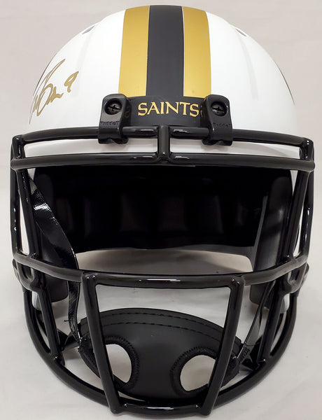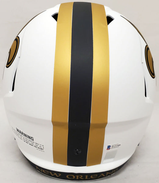 This is a New Orleans Saints Lunar Eclipse White Full Size Replica Speed Helmet that has been hand signed by Drew Brees. This item has been certified authentic by Beckett Authentication (BAS) and comes with their tamper-proof sticker and matching certificate of authenticity.