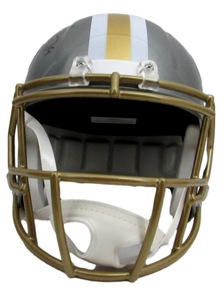 Drew Brees Autographed Silver Full Size Flash Replica Football Helmet New Orleans Saints. This helmet is authenticated by BAS/Beckett and includes their Tamper-proof Hologram Sticker.