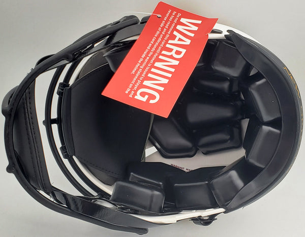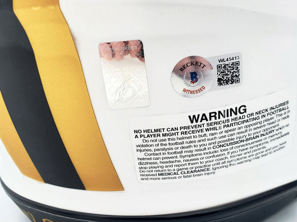 This is a New Orleans Saints Lunar Eclipse White Full Size Authentic Speed Helmet that has been hand signed by Drew Brees. The Eclipse helmets are very delicate and often have some marks or scratches on them. This item has been certified authentic by Beckett Authentication (BAS) and comes with their tamper-proof QR Code sticker that can be verified on the Beckett-authentication.com.