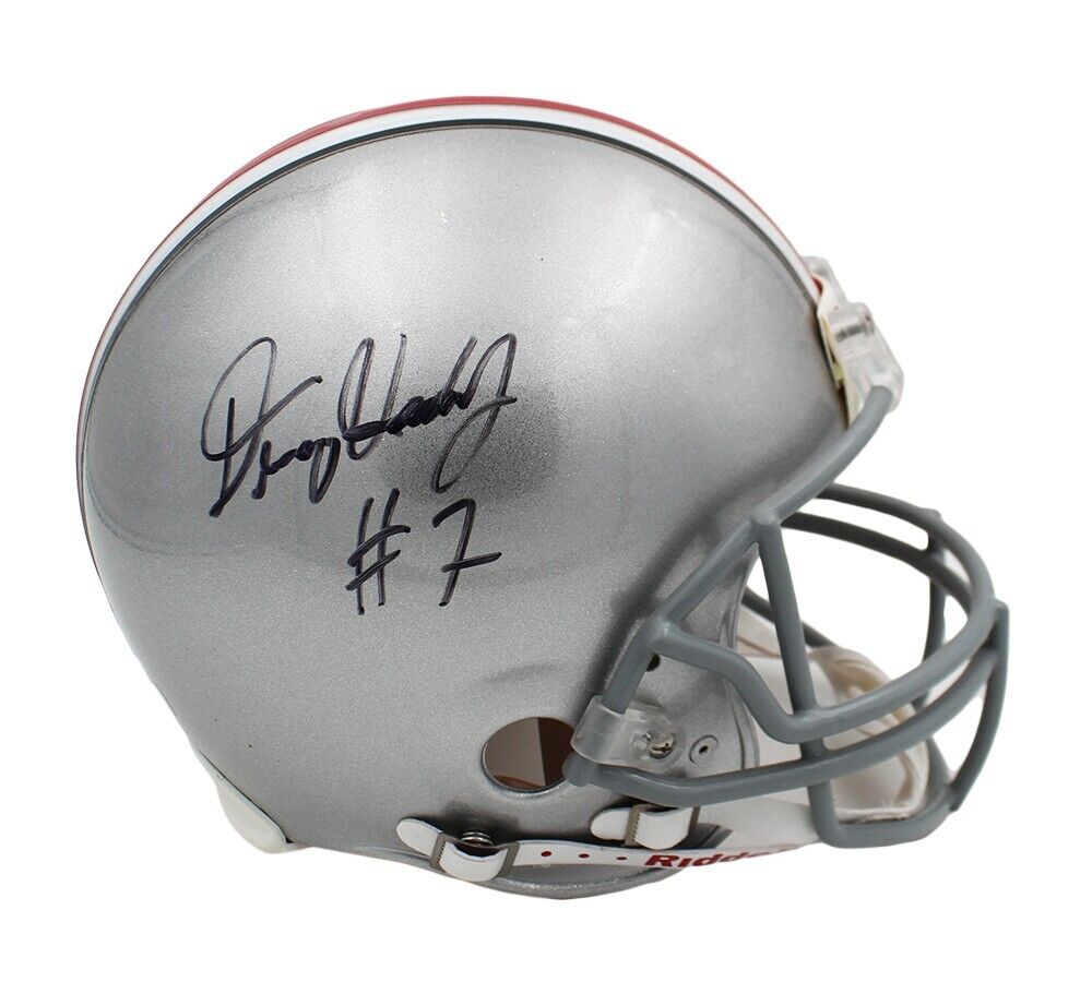 An Ohio State Buckeyes Authentic NCAA Helmet hand signed by Dwayne Haskins. The item and signature are in excellent condition. Dwayne is a quarterback who played for Ohio State University. He was drafted 15th overall in the first round of the 2019 NFL draft by the Washington Redskins. He was the 2018 Big Ten Player of the Year and the 2019 Rose Bowl MVP. AUTHENTICATION: The item is accompanied by a Certificate of Authenticity - Serial Numbered and Databased Hologram - Picture of Dwayne from the Signing