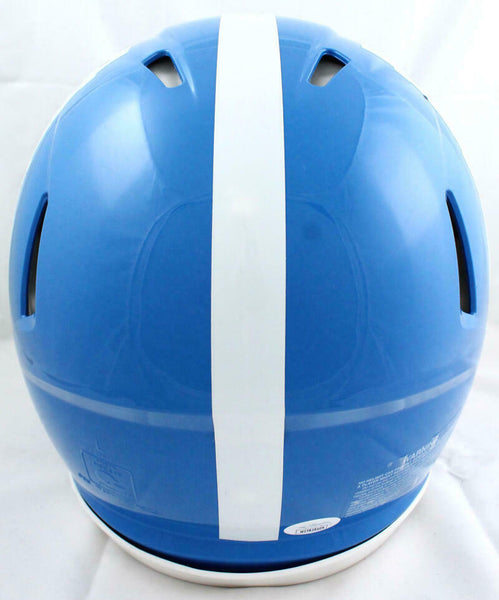 Earl Campbell Autographed Houston Oilers 60-62 TB Speed Authentic Helmet w/HOF-JSA W This is a hand autographed Helmet of Earl Campbell of the Houston Oilers. This item is inscribed with HOF. This is a Riddell Football Full Size 60-62 Throwback Speed Authentic Helmet. This item has a James Spence Witnessed Authentication, which comes with a numbered sticker and a matching JSA Certificate of Authenticity. You can view this item on the James Spence Authentication website, it shows when and where the item was signed. It was signed either at a public autograph appearance or a private signing. This is a stock photo of the item. Although you may not receive this exact item, the item you receive is virtually identical and brand new in great shape.