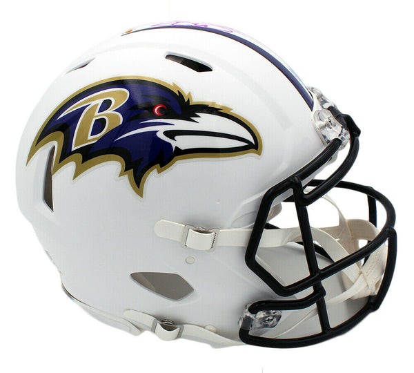 A Baltimore Ravens Speed Authentic White Matte NFL Helmet hand signed by Earl Thomas. The item and signature are in excellent condition. Earl is an NFL free safety. He was picked Round 1 with a 14th overall pick in the 2010 NFL Draft He is a Super Bowl XLVIII Champion, 7x Pro Bowler, 3x First-team All-Pro, & NFL 2010s All-Decade Team. AUTHENTICATION: The item is accompanied by a Certificate of Authenticity - Serial Numbered and Databased Hologram - Picture of Earl from the signing. -
