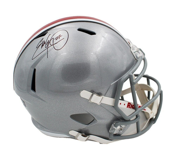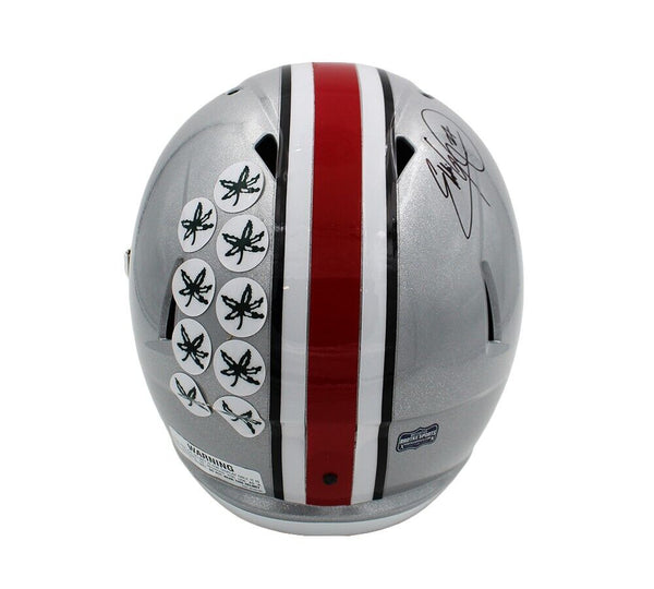 An Ohio Buckeyes Speed Replica NCAA Helmet hand signed by Eddie George. The item and signature are in excellent condition. Eddie is a former NFL running back, he played college football for Ohio State. He is a 4x Pro Bowler, 2000 First-team All-Pro, 1996 NFL Offensive Rookie of the Year, 1995 Heisman Trophy winner. AUTHENTICATION: Your item is tagged with a SmarTag Powered by Prova Technology, which gives you digital access to your items authentication records, including a proof picture from the signing.