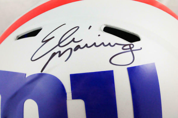 Eli Manning Autographed New York Giants F/S AMP Speed Helmet - Fanatics Auth *Black This is a hand autograph of Eli Manning of the New York Giants on a Riddell Football Replica Full Size AMP Speed Helmet. This item has a Fanatics Authentication, which comes with a numbered sticker and a matching Fanatics Certificate of Authenticity. You can view this item on the Fanatics Authentication website. It was signed either at a public autograph appearance or a private signing. This is a stock photo of the item. Although you may not receive this exact item, the item you receive is virtually identical and brand new in great shape.