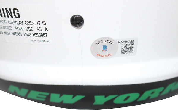 Elijah Moore Autographed New York Jets F/S Lunar Speed Helmet Beckett 37989 The number in the listing title is just an inventory sku for our records and is not the authentication number. The item pictured is a stock photo unless otherwise noted. This is a New York Jets full size lunar speed replica helmet that was personally autographed by Elijah Moore. Includes a certificate of authenticity from Beckett Authentication Services (BAS) and Denver Autographs.
