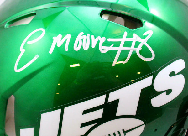 Elijah Moore Autographed New York Jets F/S Speed Authentic Helmet-Beckett W Hologram *White This is a hand autographed Helmet of Elijah Moore of the New York Jets. This is a Riddell Football Full Size Speed Authentic Helmet.This item has a Beckett Witness Authentication, which comes with a numbered hologram and a generic Beckett Certificate of Authenticity. You can view this item on the Beckett Authentication website. It was signed either at a public autograph appearance or a private signing. This is a stock photo of the item. Although you may not receive this exact item, the item you receive is virtually identical and brand new in great shape.