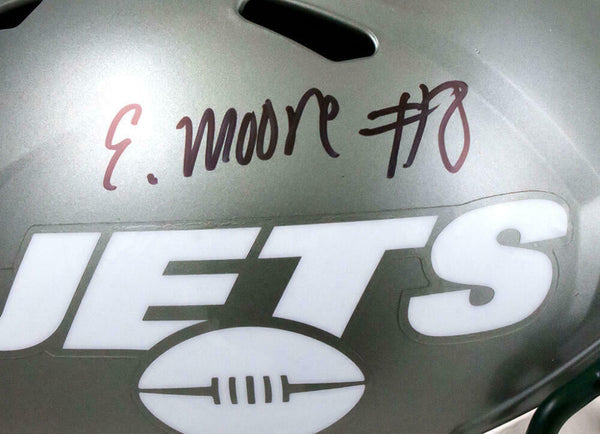 Elijah Moore Autographed New York Jets F/S Flash Speed Helmet-Beckett W Hologram *Black This is a hand autographed Helmet of Elijah Moore of the New York Jets. This is a Riddell Football Full Size Flash Speed Replica Helmet.This item has a Beckett Witness Authentication, which comes with a numbered hologram and a generic Beckett Certificate of Authenticity. You can view this item on the Beckett Authentication website. It was signed either at a public autograph appearance or a private signing. This is a stock photo of the item. Although you may not receive this exact item, the item you receive is virtually identical and brand new in great shape.