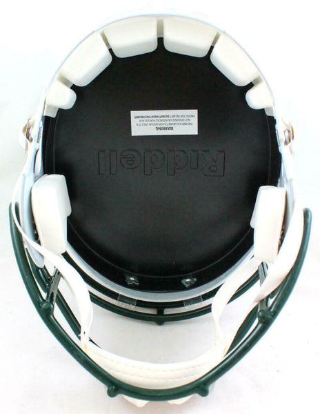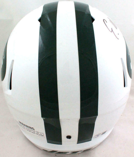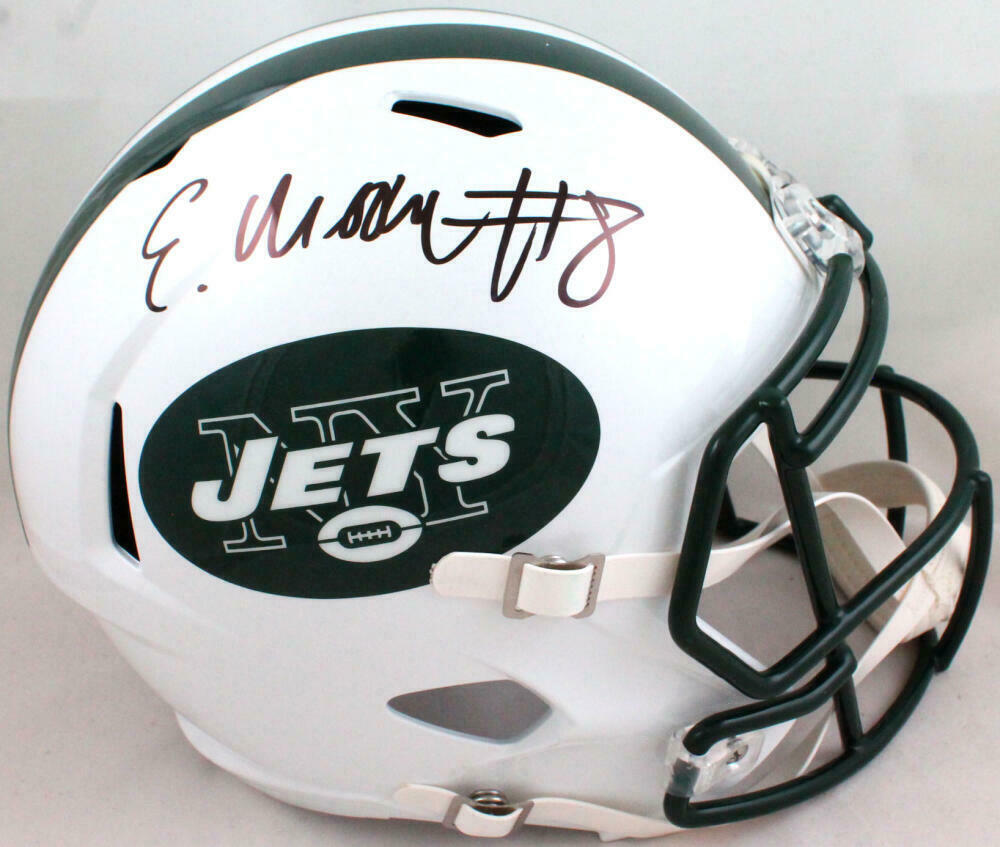 Elijah Moore Autographed New York Jets T/B F/S Speed Helmet-Beckett W Hologram *Black This is a hand autographed Helmet of Elijah Moore of the New York Jets. This is a Riddell Football Full Size T/B Speed Replica Helmet.This item has a Beckett Witness Authentication, which comes with a numbered hologram and a generic Beckett Certificate of Authenticity. You can view this item on the Beckett Authentication website. It was signed either at a public autograph appearance or a private signing. This is a stock photo of the item. Although you may not receive this exact item, the item you receive is virtually identical and brand new in great shape.