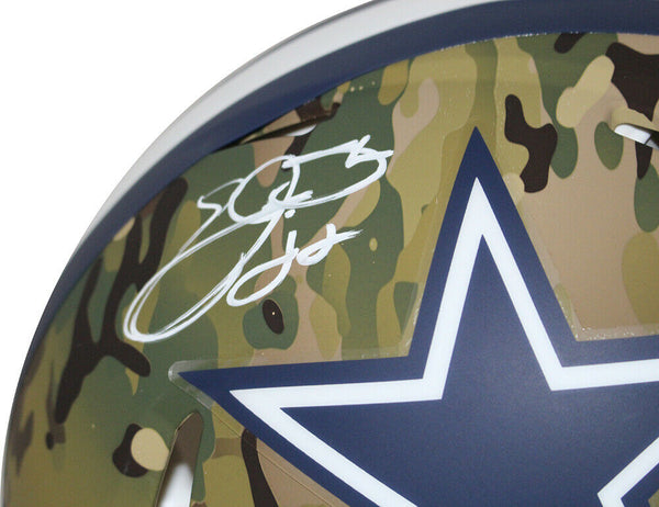 Emmitt Smith Autographed Dallas Cowboys Authentic Camo Speed Helmet 31361 The number in the listing title is just an inventory sku for our records and is not the authentication number. This is a Dallas Cowboys full size authentic Camo speed helmet that was personally autographed by Emmitt Smith. Includes a certificate of authenticity from Beckett Authentication Services (BAS) and Denver Autographs.
