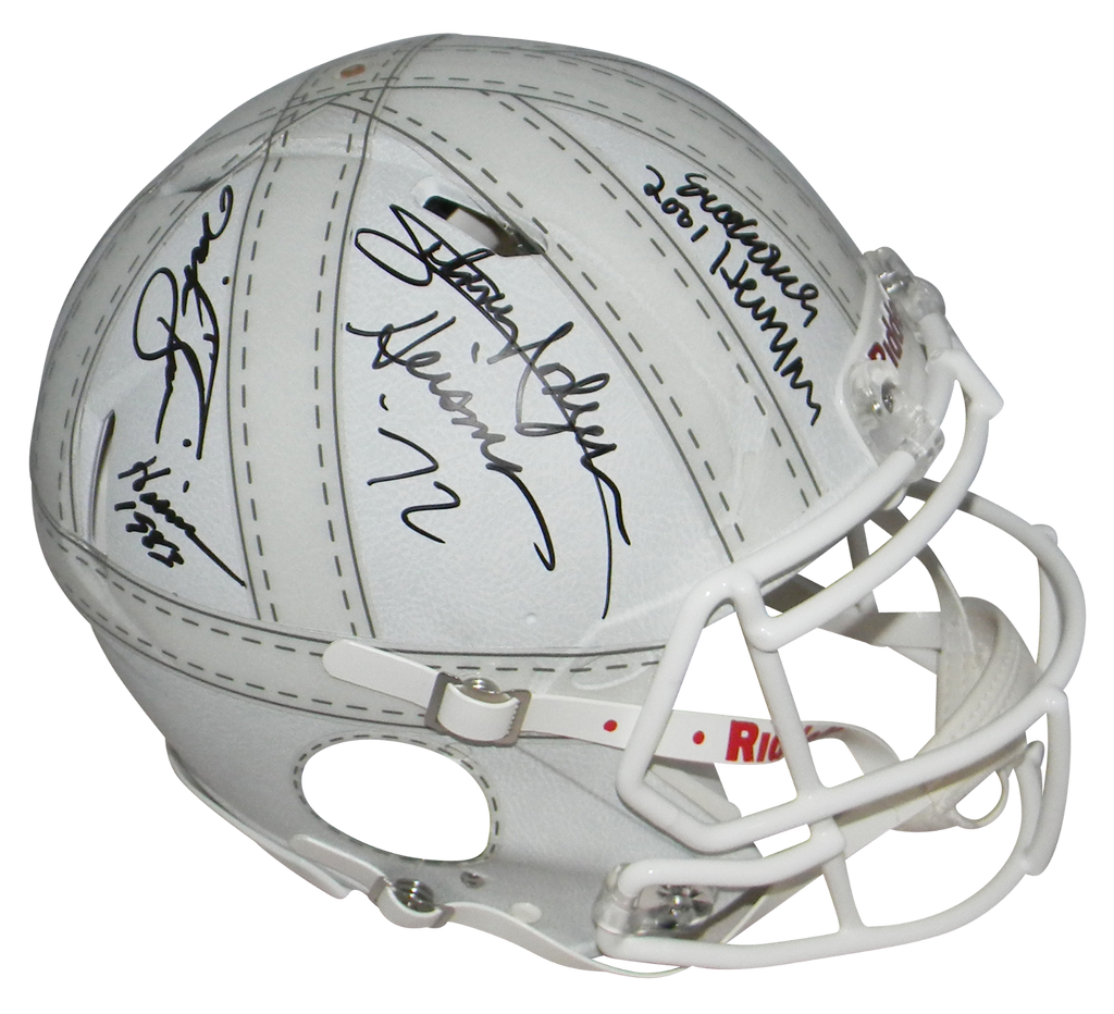 Eric Crouch, Mike Rozier and Johnny Rodgers, the 3 Heisman Trophy winners for the Cornhuskers, have each hand signed this 2018 Faux-Leather Nebraska Riddell Speed full-size authentic helmet at a private signing. This helmet is fully padded inside like the ones worn on the field. This item comes with a certificate of authenticity (COA) from Beckett Authentication Services and was signed in the presence of one of their representatives. You will receive a serial-numbered COA along with a matching serial-numbered sticker on the helmet. The authenticity can be verified online by entering the serial number.Item pictured may not be the exact item you will receive. It will be similar quality, and we guarantee your satisfaction.