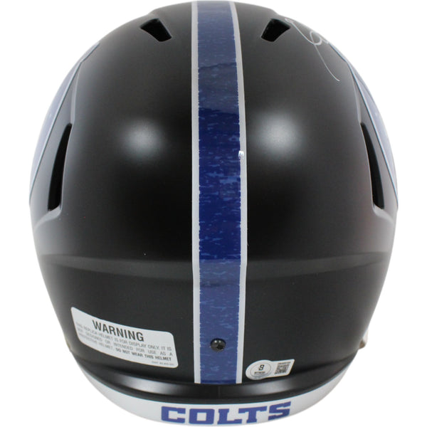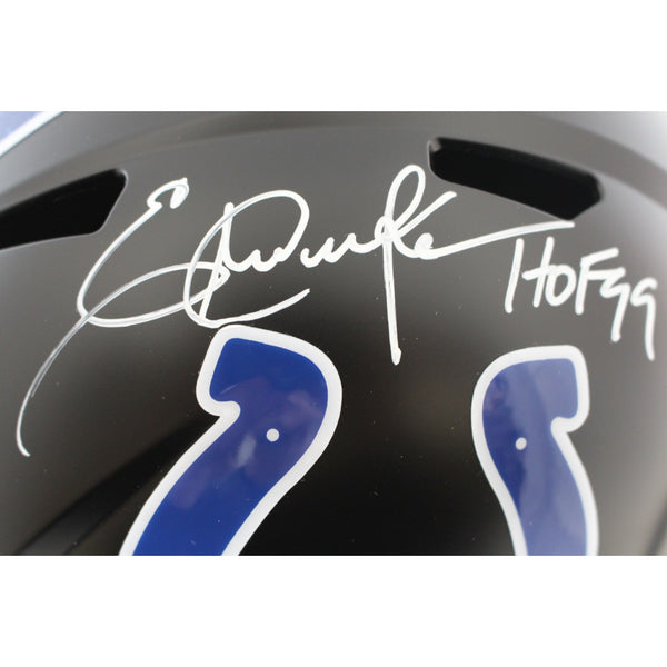 The number in the listing title is just an inventory sku for our records and is not the authentication number. This is a stock photo, unless otherwise noted. This is an Indianapolis Colts 2023 Alternate Indiana Nights Full Size Replica Helmet that was personally autographed by Eric Dickerson, includes "HOF" inscription. Includes a certificate of authenticity from Beckett Authentication Services (BAS) and Denver Autographs.