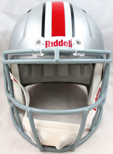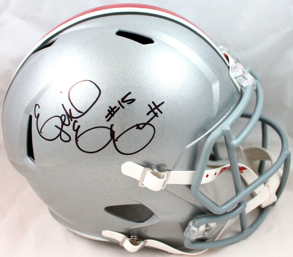 Ezekiel Elliott Autographed Ohio St. F/S Speed Helmet-Beckett W Hologram *Black This is a hand autograph of Ezekiel Elliott of Ohio State on a Riddell Football Full Size Speed Replica Helmet. This item has a Beckett Witnessed Authentication, which comes with a numbered sticker hologram and a QR code for verification. You can view this item on the Beckett Authentication website and it shows when and where the item was signed. It was signed either at a public autograph appearance or a private signing. This is a stock photo of the item. Although you may not receive this exact item, the item you receive is virtually identical and brand new in great shape.