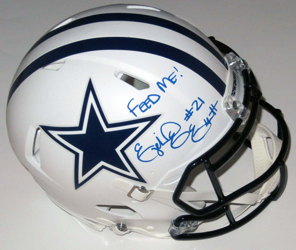 Ezekiel Elliott Signed Dallas Cowboys Flat White Speed Helmet W/Feed Me Beckett