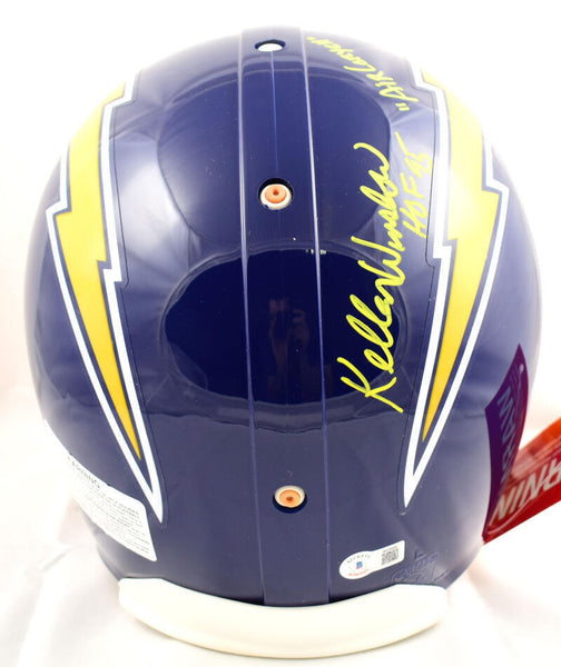 This is a hand autographed Helmet of Dan Fouts, Charlie Joiner, Kellen Winslow of the San Diego Chargers. This is a Riddell Football Full Size Authentic Helmet. This item has a Beckett Witnessed Authentication, which comes with a Beckett numbered sticker hologram and a QR code for verification. You can view this item on the Beckett Authentication website, it shows when and where the item was signed. It was signed either at a public autograph appearance or a private signing. This is a stock photo of the item. Although you may not receive this exact item, the item you receive is virtually identical and brand new in great shape. We appreciate your interest in our items, and we hope that we can make all transactions professional and satisfying. This is a hand autographed Helmet of Dan Fouts, Charlie Joiner, Kellen Winslow of the San Diego Chargers. This is a Riddell Football Full Size Authentic Helmet. This item has a Beckett Witnessed Authentication, which comes with a Beckett numbered sticker hologram and a QR code for verification. You can view this item on the Beckett Authentication website, it shows when and where the item was signed. It was signed either at a public autograph appearance or a private signing. This is a stock photo of the item. Although you may not receive this exact item, the item you receive is virtually identical and brand new in great shape. We appreciate your interest in our items, and we hope that we can make all transactions professional and satisfying.