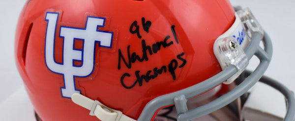 Fred Taylor Autographed Florida Gators Throwback Speed-Beckett W Hologram *Black This is a hand autograph of Fred Taylor of the Florida Gators on a Riddell Football Throwback Speed Mini Helmet. Inscribed 96 National Champs. This item has a Beckett Witnessed Authentication, which comes with a numbered sticker hologram and a QR code for verification. You can view this item on the Beckett Authentication website, it shows when and where the item was signed. It was signed either at a public autograph appearance or a private signing. This is a stock photo of the item. Although you may not receive this exact item, the item you receive is virtually identical and brand new in great shape.