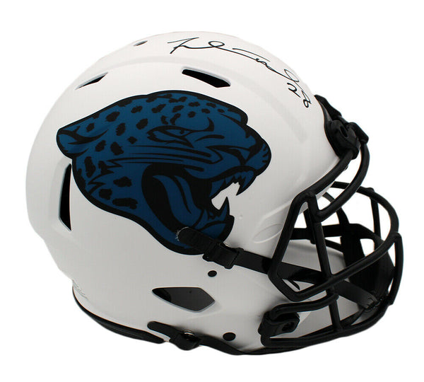 A Jacksonville Jaguars Speed Authentic Lunar NFL Helmet hand signed by Fred Taylor. The item and signature are in excellent condition. Fred played college football for the University of Florida, and was recognized as an All-American. Taylor was selected by the Jacksonville Jaguars with the ninth overall pick in the 1998 NFL Draft, and played for the Jaguars and New England Patriots of the NFL. Taylor is a member of the 10,000 yard rushing club. AUTHENTICATION: The item is accompanied by a Certificate of Authenticity - Serial Numbered and Databased Hologram - Picture of Fred from the Signing