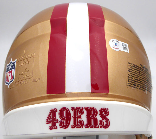 This is a Gold Full Size Authentic Helmet that has been hand signed by Fred Warner. This item has been certified authentic by Beckett Authentication (BAS) and comes with their tamper-proof QR Code sticker that can be verified on the Beckett-authentication.com.