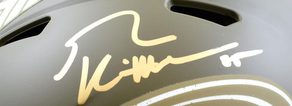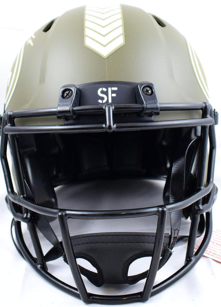 George Kittle Autographed San Francisco 49ers F/S Salute to Service Speed Authentic Helmet-Beckett W Hologram *Gold This is a Hand Autograph of George Kittle of the San Francisco 49ers on a Riddell Football Full Size Salute to Service Speed Authentic Helmet. This item has a Beckett Witness Authentication, which comes with a Beckett numbered hologram and a QR code for verification. You can view this item on the Beckett website. It was signed either at a public autograph appearance or a private signing. This is a stock photo of the item. Although you may not receive this exact item, the item you receive is virtually identical and brand new in great shape.