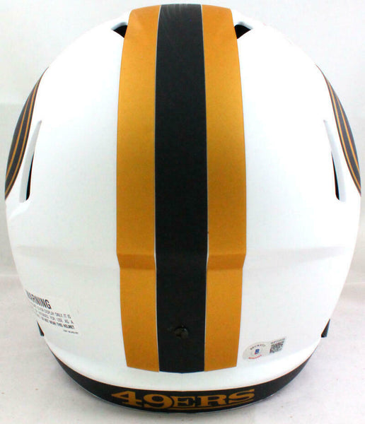 George Kittle Autographed 49ers Lunar Speed Full Size Helmet- Beckett W Hologram *Red This is a George Kittle of the San Francisco 49ers hand autographed Riddell Lunar Speed full size replica helmet. This item has a Beckett Witnessed Authentication, which comes with a numbered hologram and a generic Beckett Certificate of Authenticity. You can view this item on the Beckett website, it shows when and where the item was signed. It was signed either at a public autograph appearance or a private signing. This is a stock photo of the item. Although you may not receive this exact item, the item you receive is virtually identical, brand new, and in great shape.