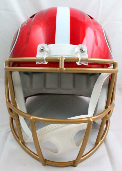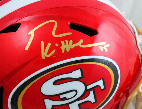 George Kittle Signed F/S San Francisco 49ers Flash Speed Helmet-Beckett W Hologram *White This is a hand autograph of George Kittle of the San Francisco on a Riddell Football Full Size Flash Speed Replica Helmet. This item has a Beckett Witness Authentication, which comes with a Beckett numbered sticker hologram and a QR code for verification. You can view this item on the Beckett website and it shows when and where the item was signed. It was signed either at a public autograph appearance or a private signing. This is a stock photo of the item. Although you may not receive this exact item, the item you receive is virtually identical and brand new in great shape.