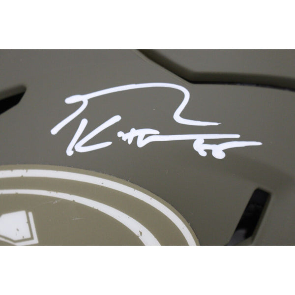 The number in the listing title is just an inventory sku for our records and is not the authentication number. The item pictured is a stock photo unless otherwise noted. This is a San Francisco 49ers 2022 Salute to Service Full Size SpeedFlex Helmet that was personally autographed by George Kittle. Includes a certificate of authenticity from Beckett Authentication Services (BAS) and Denver Autographs.
