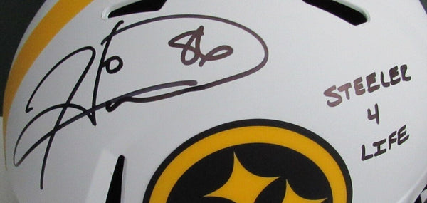Hines Ward HOF Autographed/Inscribed "STEELER 4 LIFE" Full Size White Lunar Eclipse Replica Football Helmet Pittsburgh Steelers. This helmet is authenticated by BAS/Beckett and includes their Tamper-proof Sticker.
