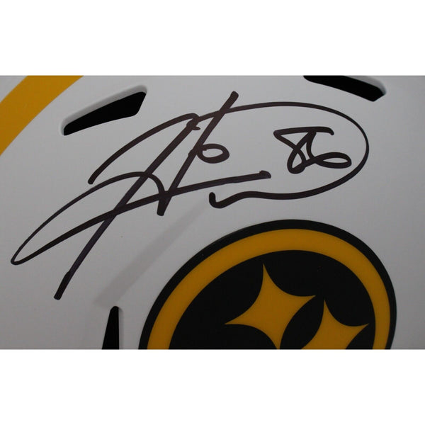 The number in the listing title is just an inventory sku for our records and is not the authentication number. The item pictured is a stock photo unless otherwise noted. This is a Pittsburgh Steelers Full Size Replica Lunar Speed Helmet that was personally autographed by Hines Ward. Includes a certificate of authenticity from Beckett Authentication Services (BAS) and Denver Autographs.