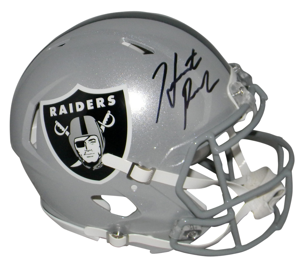 Hunter Renfrow, star wide receiver for the Las Vegas Raiders, has hand signed this Raiders Riddell Speed full-size authentic helmet at a private signing. This helmet is fully padded inside like the ones on the field. This item comes with a certificate of authenticity (COA) from Beckett Authentication Services and was signed in the presence of one of their representatives. You will receive a serial-numbered COA along with a matching serial-numbered sticker on the helmet. The authenticity can be verified online by entering the serial number.Item pictured may not be the exact item you will receive. It will be similar quality, and we guarantee your satisfaction.