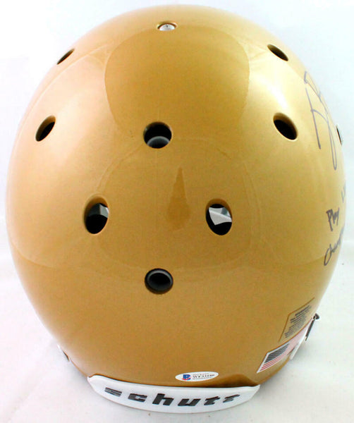 Ian Book Autographed F/S ND Gold Schutt Authentic Helmet W/ Insc- Beckett W *Blk