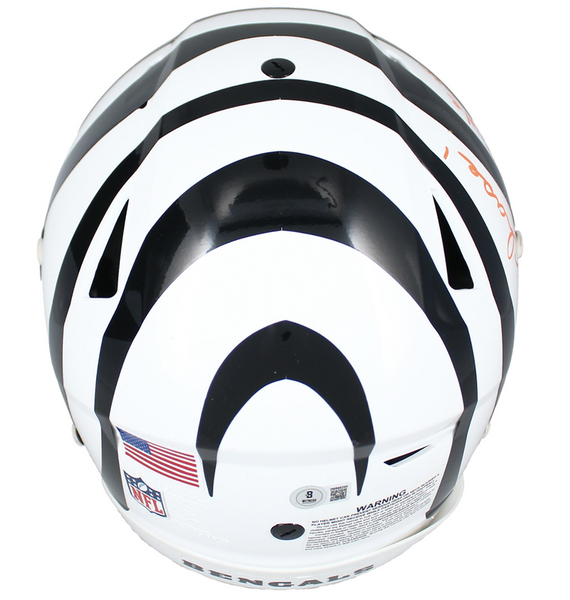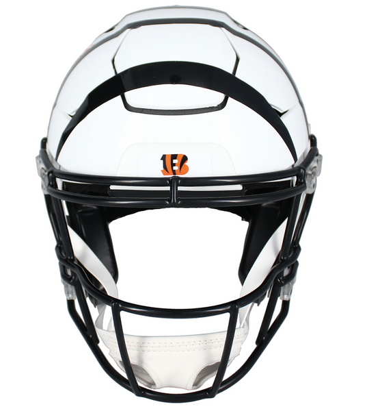 This Bengals authentic Riddell Speedflex alternate helmet has been personally hand-signed by Ja'Marr Chase with the added inscription "24 Triple Crown." It comes with an individually numbered, tamper-evident hologram from Beckett Authentic. To ensure authenticity, the hologram can be reviewed online. This process helps to ensure that the product purchased is authentic and eliminates any possibility of duplication or fraud.