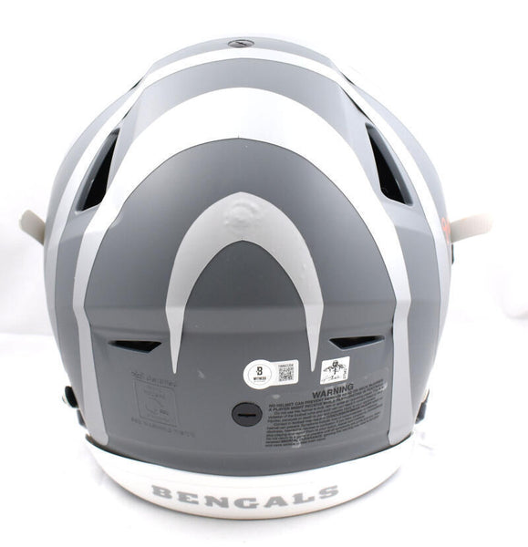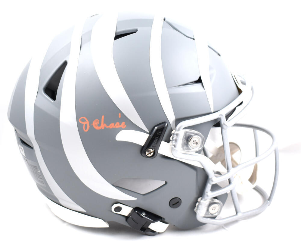 Ja'Marr Chase Autographed Cincinnati Bengals Slate Speed Flex- Beckett W Hologram *Orange *Smeared *You will receive image shown* *Smeared* This is a hand autograph of Ja'Marr Chase of the Cincinnati Bengals on a Riddell Football Full Size Slate Speed Flex Authentic Helmet. This item has a Beckett Witness Authentication, which comes with a numbered sticker hologram and a QR code for verification. You can view this item on the Beckett Authentication website and it shows when and where the item was signed. It was signed either at a public autograph appearance or a private signing.
