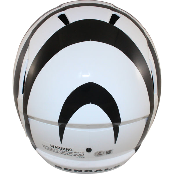 The number in the listing title is just an inventory sku for our records and is not the authentication number. The item pictured is a stock photo unless otherwise noted. This is a Cincinnati Bengals Full Size Replica Helmet that was personally autographed by Ja'Marr Chase. Includes a certificate of authenticity from Beckett Authentication Services (BAS) and Denver Autographs.