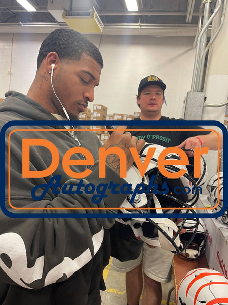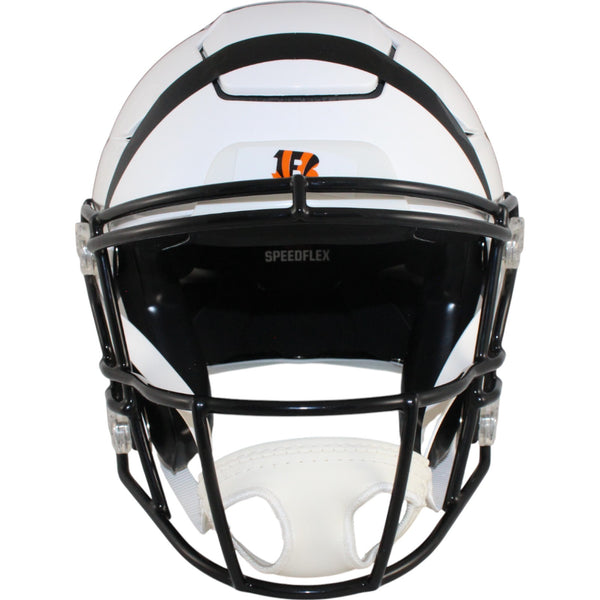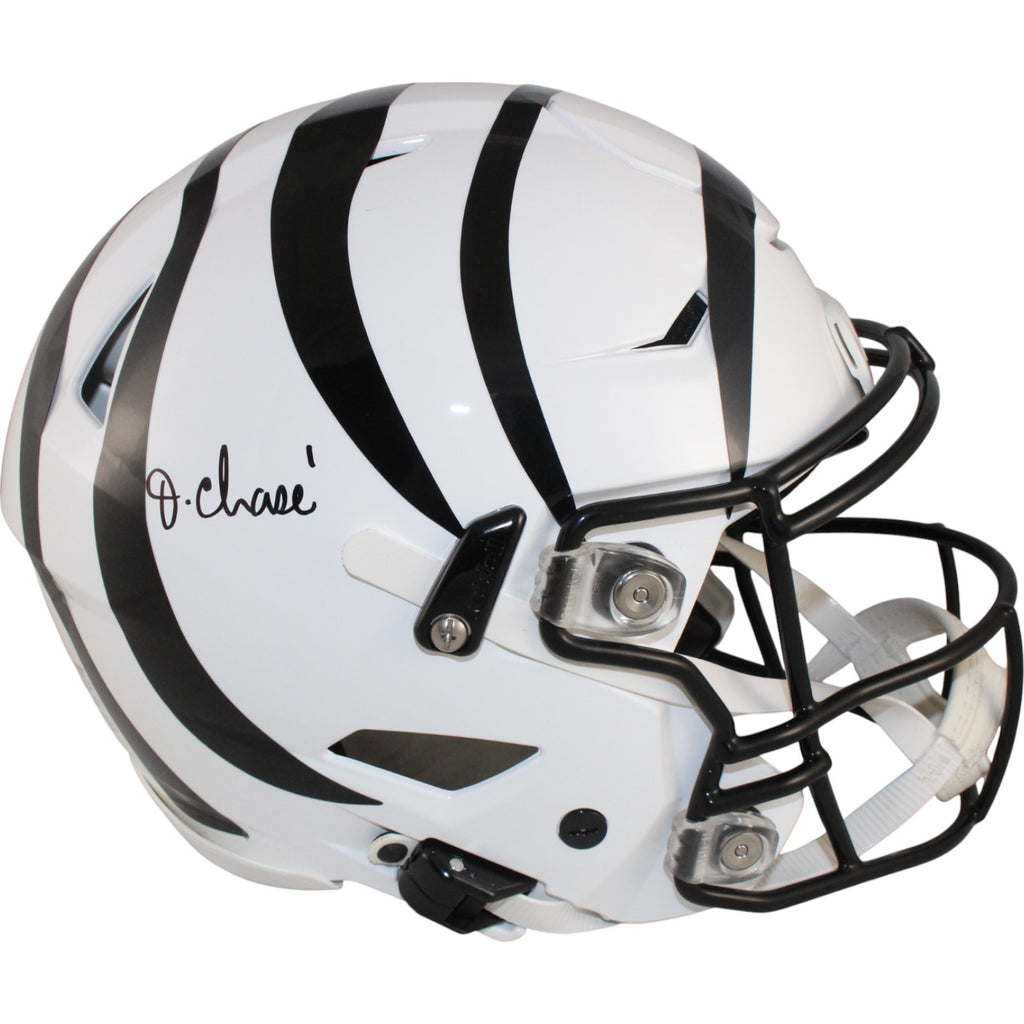 The number in the listing title is just an inventory sku for our records and is not the authentication number. The item pictured is a stock photo unless otherwise noted. This is a Cincinnati Bengals Full Size Authentic SpeedFlex 2022 Alternate Helmet that was personally autographed by Ja'Marr Chase. Includes a certificate of authenticity from Beckett Authentication Services (BAS) and Denver Autographs.