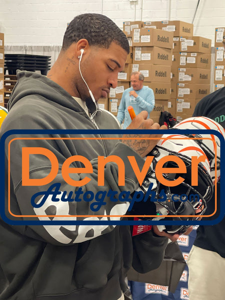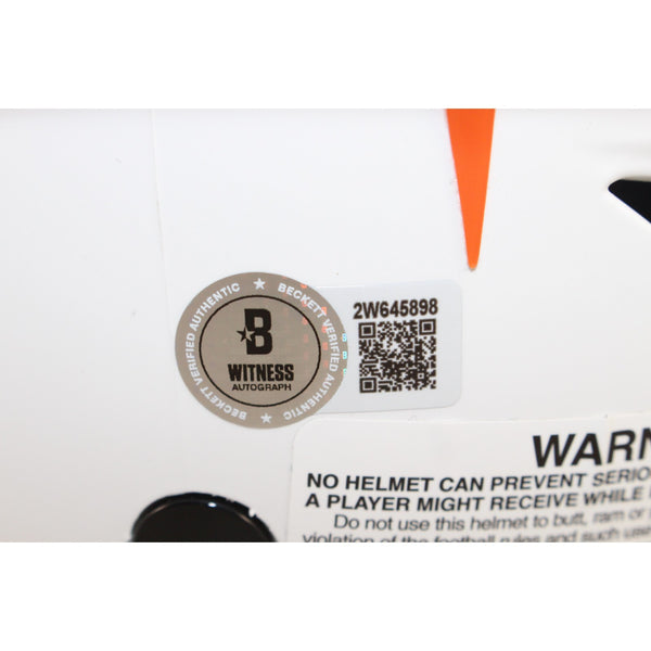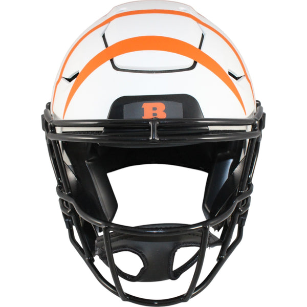 The number in the listing title is just an inventory sku for our records and is not the authentication number. The item pictured is a stock photo unless otherwise noted. This is a Cincinnati Bengals Full Size Authentic SpeedFlex Lunar Helmet that was personally autographed by Ja'Marr Chase. Includes a certificate of authenticity from Beckett Authentication Services (BAS) and Denver Autographs.