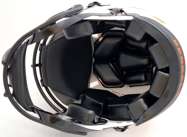 This is a Cincinnati Bengals Lunar Eclipse White Full Size Authentic Speed Helmet that has been hand signed by Ja'Marr Chase. The Eclipse helmets are delicate and may have some marks or scratches on them. This item has been certified authentic by Beckett Authentication (BAS) and comes with their tamper-proof QR Code hologram.