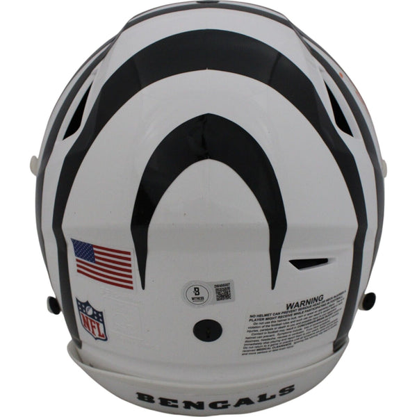 The number in the listing title is just an inventory sku for our records and is not the authentication number. This is a stock photo, unless otherwise noted. This is a Cincinnati Bengals Authentic 2022 Alternate SpeedFlex Helmet that was personally autographed by JaMarr Chase. Includes a certificate of authenticity from Beckett Authentication Services (BAS) and Denver Autographs.