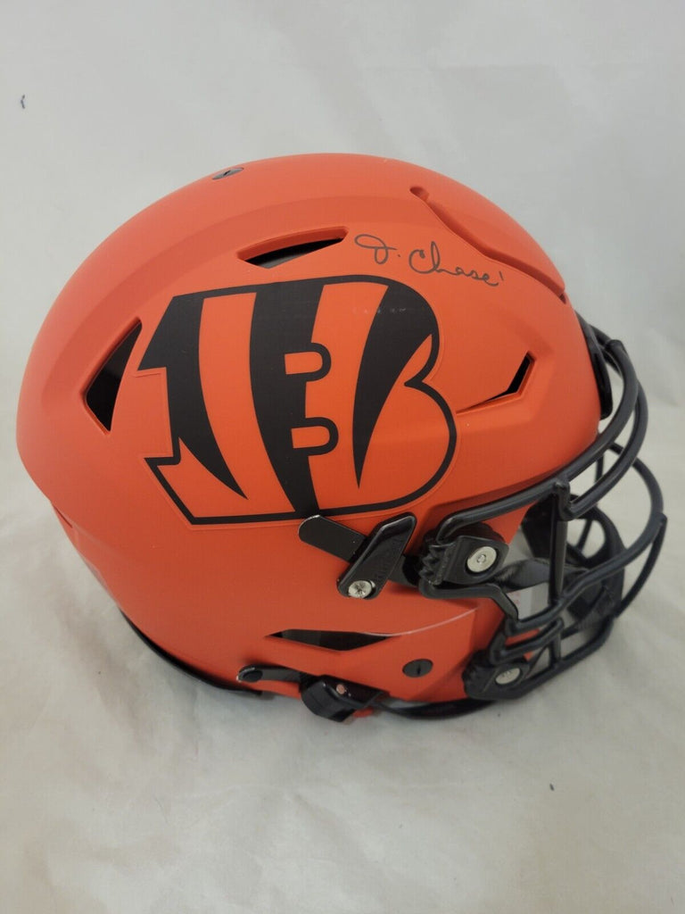 JAMARR CHASE AUTOGRAPHED CINCINNATI BENGALS FULL SIZE RAVE SPEEDFLEX AUTHENTIC HELMET WITH BECKETT QR CODE HOLOGRAM COATHIS MEANS THE HELMET WAS SIGNED WITH A BECKETT REPRESENTATIVE PRESENT SO YOU CAN BE 100% CERTAIN ITS THE REAL THING.