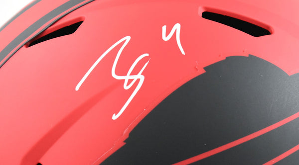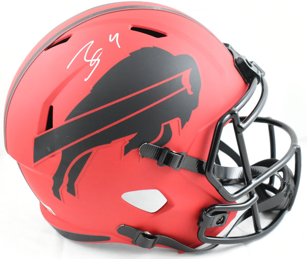This is a James Cook of the Buffalo Bills Autographed Riddell football full size Rave Speed Replica helmet. This item has a Beckett Witnessed Authentication, which comes with a numbered hologram and a QR code for verification. You can view this item on the Beckett Authentication website and it shows when and where the item was signed. It was signed either at a public autograph appearance or a private signing. This is a stock photo of the item. Although you may not receive this exact item, the item you receive is virtually identical, brand new, and in great shape. *Autograph location may vary* This is a James Cook of the Buffalo Bills Autographed Riddell football full size Rave Speed Replica helmet. This item has a Beckett Witnessed Authentication, which comes with a numbered hologram and a QR code for verification. You can view this item on the Beckett Authentication website and it shows when and where the item was signed. It was signed either at a public autograph appearance or a private signing. This is a stock photo of the item. Although you may not receive this exact item, the item you receive is virtually identical, brand new, and in great shape. *Autograph location may vary*