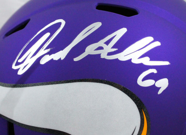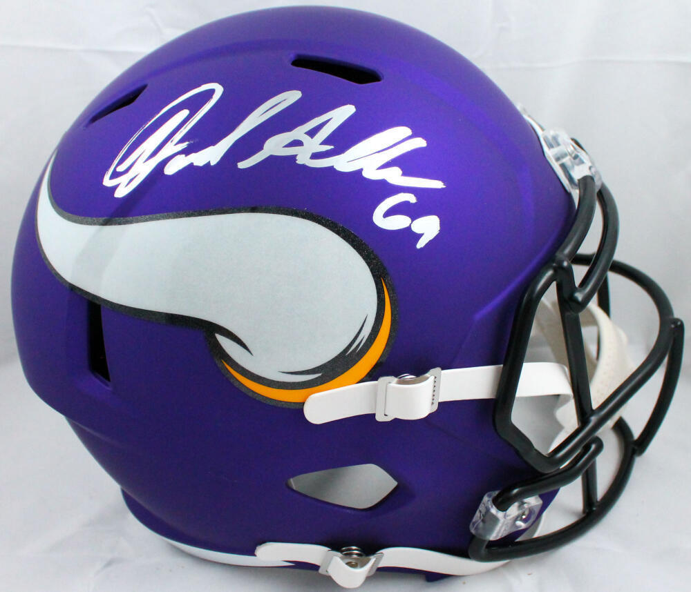 Jared Allen Autographed Minnesota Vikings F/S Speed Helmet-Beckett W Hologram *Silver This is a Jared Allen of the Minnesota Vikings hand autographed Riddell Speed Full Size Replica Helmet. This item has a Beckett Witness Authentication, which comes with a numbered sticker hologram and a QR code for verification. It was signed either at a public autograph appearance or a private signing. This is a stock photo of the item. Although you may not receive this exact item, the item you receive is virtually identical, brand new, and in great shape.