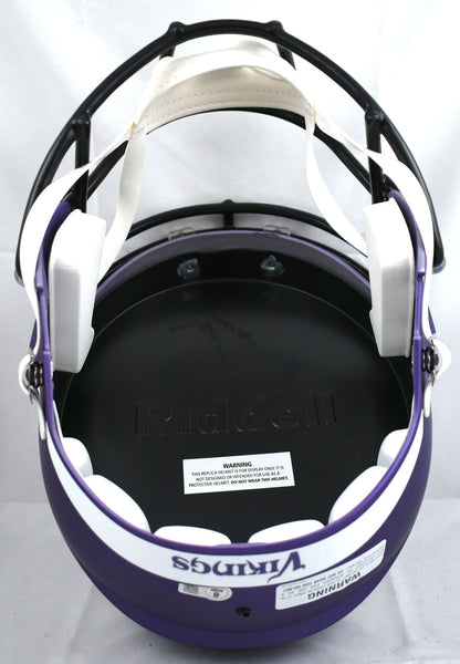 This is a Jared Allen of the Minnesota Vikings hand autographed Riddell football full size Speed Replica helmet. This item has a Beckett Witnessed Authentication, which comes with a numbered hologram and a QR code for verification. You can view this item on the Beckett Authentication website and it shows when and where the item was signed. It was signed either at a public autograph appearance or a private signing. This is a stock photo of the item. Although you may not receive this exact item, the item you receive is virtually identical, brand new, and in great shape. This is a Jared Allen of the Minnesota Vikings hand autographed Riddell football full size Speed Replica helmet. This item has a Beckett Witnessed Authentication, which comes with a numbered hologram and a QR code for verification. You can view this item on the Beckett Authentication website and it shows when and where the item was signed. It was signed either at a public autograph appearance or a private signing. This is a stock photo of the item. Although you may not receive this exact item, the item you receive is virtually identical, brand new, and in great shape.