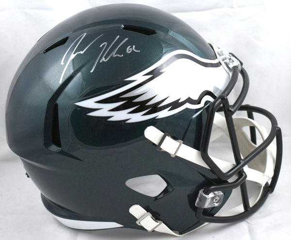 This is a hand autographed Helmet of Jason Kelce of the Philadelphia Eagles. This is a Riddell Football Full Size Speed Replica Helmet. This item has a PSA Authentication, which comes with a numbered sticker hologram. You can view this item on the PSA Authentication website, it shows when and where the item was signed. It was signed either at a public autograph appearance or a private signing. This is a stock photo of the item. Although you may not receive this exact item, the item you receive is virtually identical and brand new in great shape. This is a hand autographed Helmet of Jason Kelce of the Philadelphia Eagles. This is a Riddell Football Full Size Speed Replica Helmet. This item has a PSA Authentication, which comes with a numbered sticker hologram. You can view this item on the PSA Authentication website, it shows when and where the item was signed. It was signed either at a public autograph appearance or a private signing. This is a stock photo of the item. Although you may not receive this exact item, the item you receive is virtually identical and brand new in great shape.