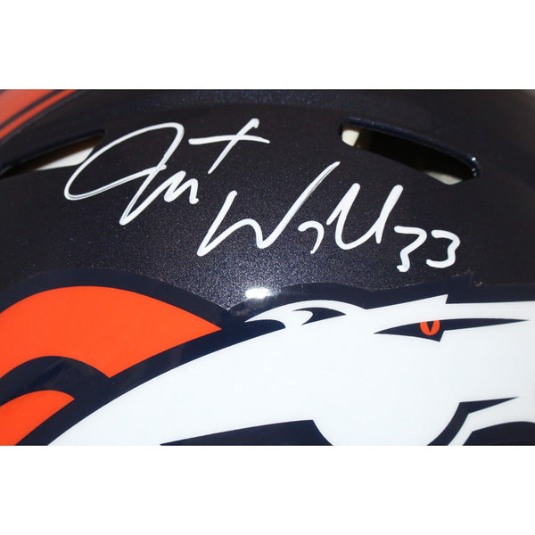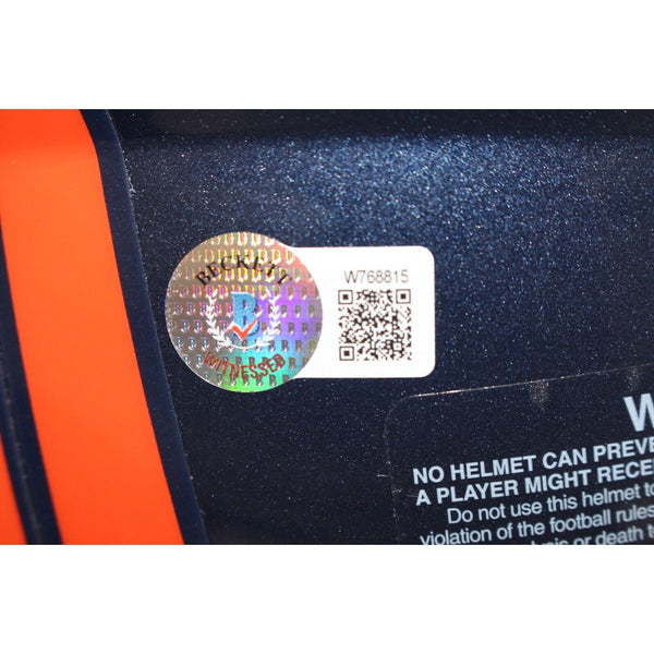 Javonte Williams Signed Denver Broncos Authentic Helmet Beckett 40954 The number in the listing title is just an inventory sku for our records and is not the authentication number. The item pictured is a stock photo unless otherwise noted. This is a Denver Broncos Full Size Authentic Helmet that was personally autographed by Javonte Williams. Includes a certificate of authenticity from Beckett Authentication Services (BAS) and Denver Autographs.
