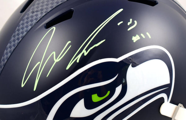 Jaxon Smith-Njigba Autographed Seattle Seahawks F/S Speed Helmet- Fanatics *Green This is a hand autographed Helmet of Jaxon Smith-Njigba of the Seattle Seahawks. This is a Riddell Football Full Size Speed Replica Helmet. This item has a Fanatics Authentication, which comes with a Fanatics numbered sticker hologram and a QR code for verification. You can view this item on the Fanatics Authentication website. It was signed either at a public autograph appearance or a private signing. This is a stock photo of the item. Although you may not receive this exact item, the item you receive is virtually identical and brand new in great shape.